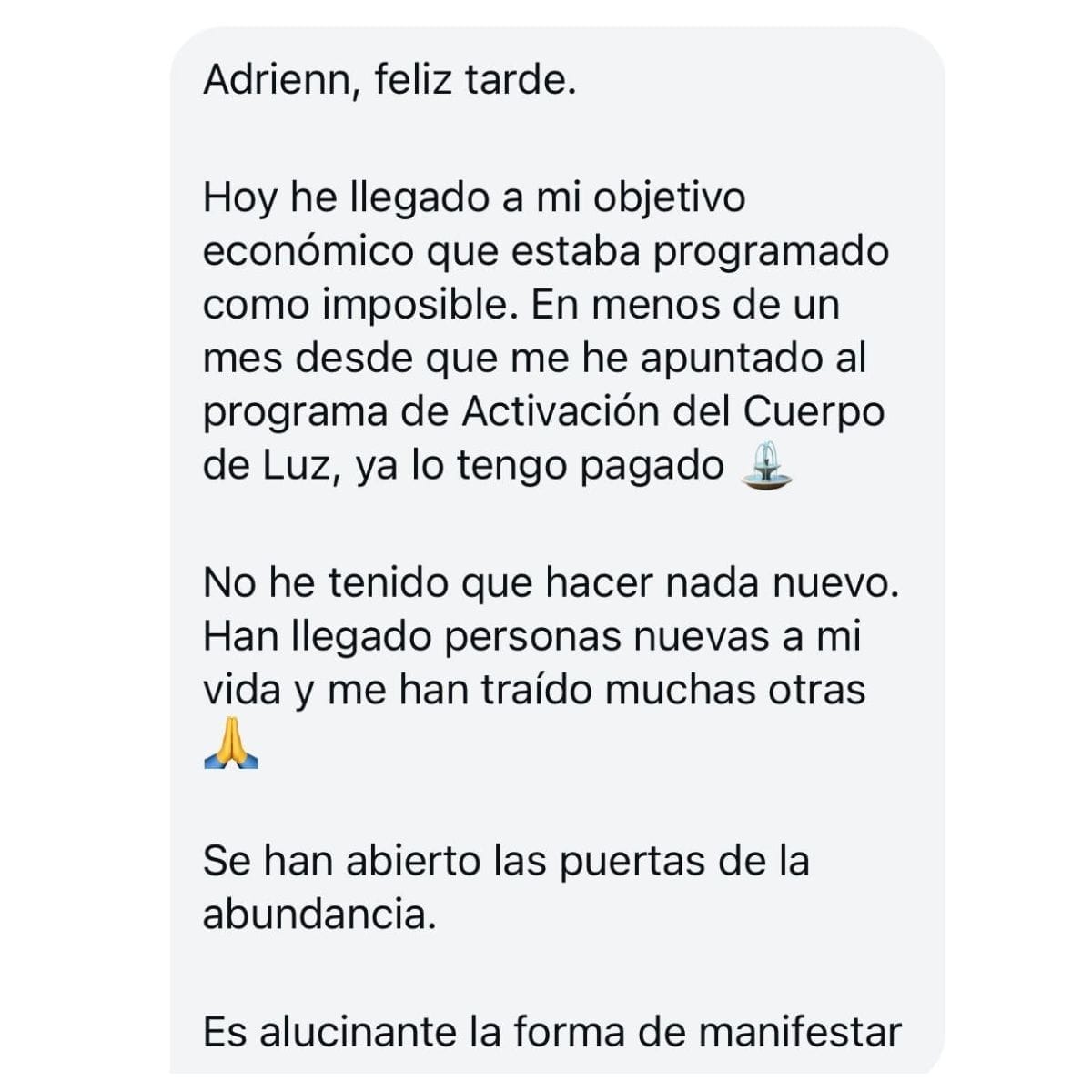 „Más allá del ayuno y el silencio, las meditaciones con Adrienn activaban mi red energética. Una semana después, aún siento que mi sistema está en un proceso de reprogramación. Ella canalizó mensajes claros, conectados desde su presencia divina hasta la mía.